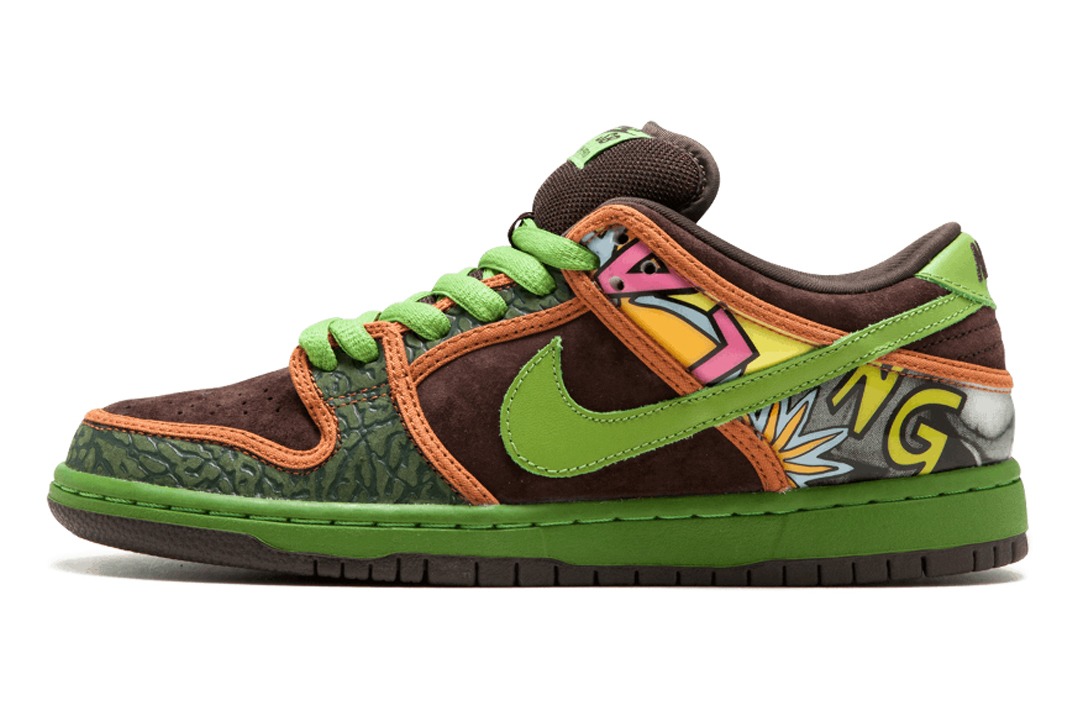 Nike SB Dunk Low De La Soul, зеленый с коричневым и желтым, кожа, замша, мужские Размер 44
